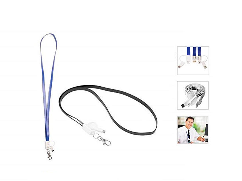 Lanyard charging cable with Lightning, Micro USB and USB type C port
